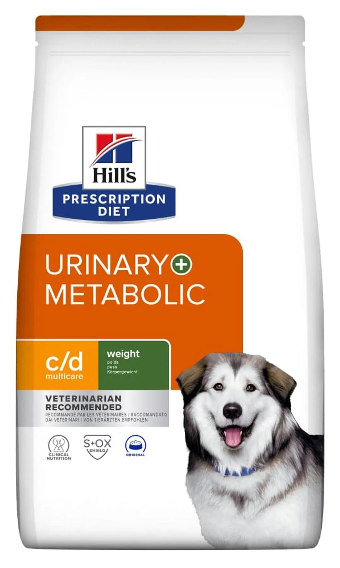 Prescription Diet™ c/d Multicare + Metabolic pour chien est un aliment diĂ©tĂ©tique complet destinĂ© Ă rĂ©duire l’excès de poids chez votre animal. De plus il permet de rĂ©duire la rĂ©cidive des calculs de struvite et Ă dissoudre les calculs de struvite chez le chien adulte.