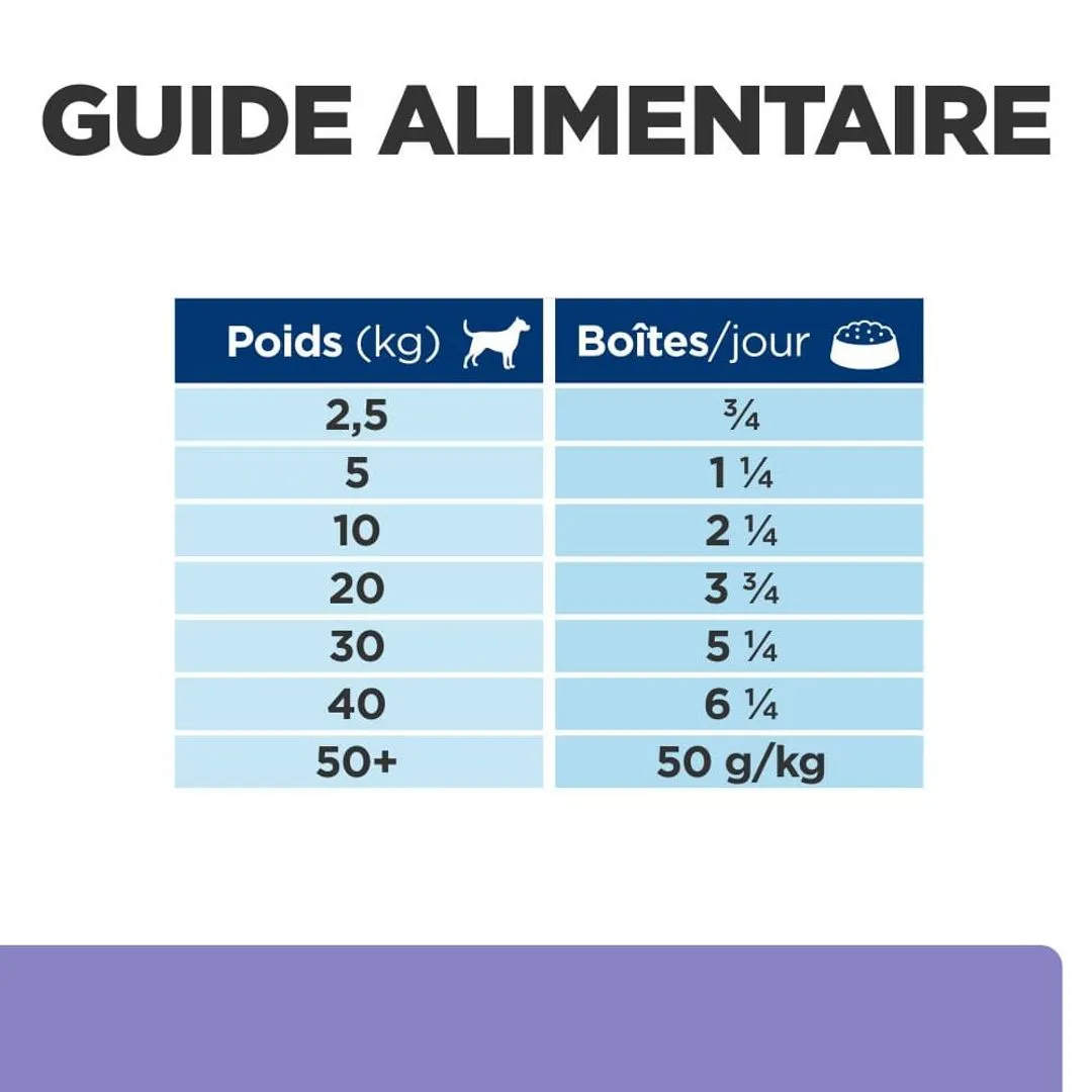 Diarrhée, vomissement, constipation… les manifestations des troubles digestifs chez le chien sont aussi désagréables pour l’animal que pour son maître. De plus, elles peuvent provoquer de graves maladies et doivent être prises en charge par un vétérinaire. Les nutritionnistes et vétérinaires de Hill’s ont mis au point les boîtes vétérinaires pour chien Prescription Diet i/d Low Fat Digestive Care afin de soutenir la santé digestive de votre animal de compagnie. Elles contiennent un irrésistible mijoté délicatement cuisiné au poulet et aux légumes avec un peu de riz pour le grand plaisir de l’animal.