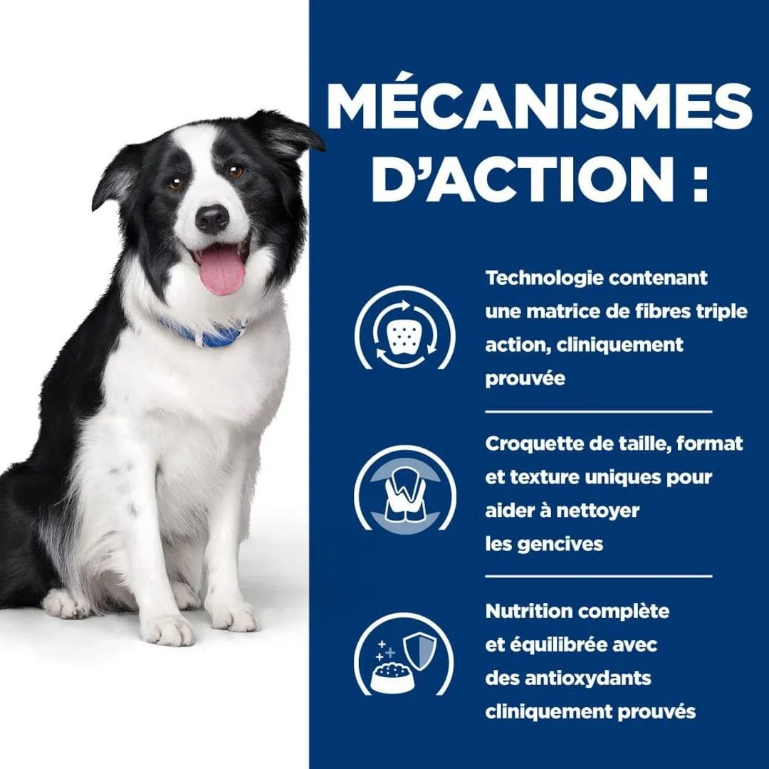 Les plaques dentaires, le tartre, l’inflammation des gencives (gingivite) et la mauvaise haleine sont les signes qui montrent qu’un chien souffre d’une maladie bucco-dentaire. Il faut prendre des mesures rapidement avant que la maladie ne finisse par faire des dĂ©gâts comme la perte des dents ou la propagation des infections sur le foie, le cĹ“ur ou les poumons. Une nourriture appropriĂ©e telle que Hill’s Prescription Diet Canine T/D est un bon commencement. Ces croquettes diĂ©tĂ©tiques sont spĂ©cialement Ă©laborĂ©es pour les chiens affectĂ©s par des problèmes bucco-dentaires. L’efficacitĂ© de cet aliment sur la dentition du chien est prouvĂ©e cliniquement. Les croquettes existent en trois tailles pour rĂ©pondre aux besoins des diverses races.