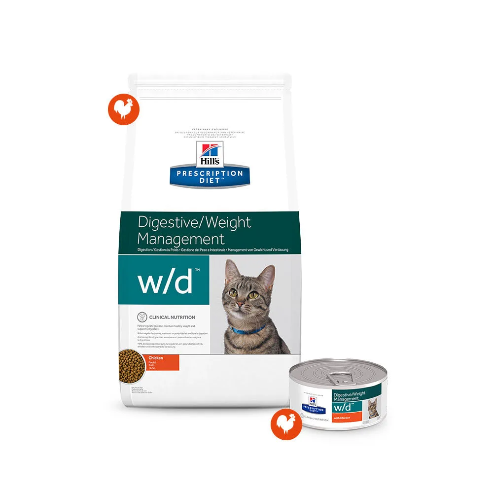 - Hill’s w/d Low Fat/Diabetes/Colitis Prescription Diet Feline est pauvre en calories et en matières grasses. Cette alimentation aide votre chat Ă maintenir son poids de forme.