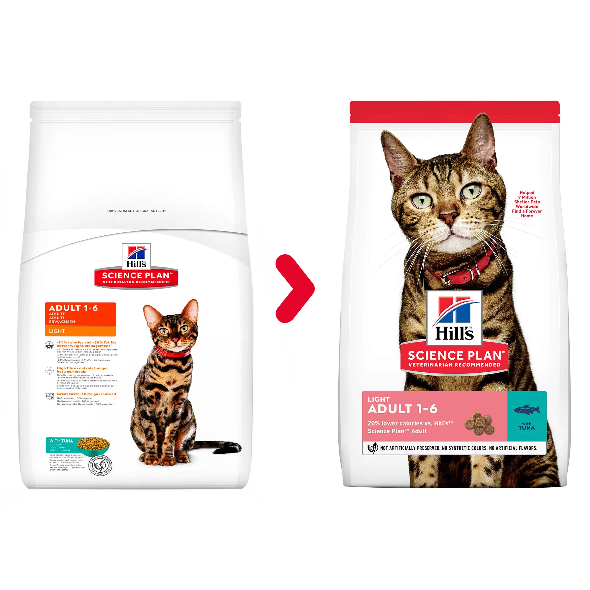 - 20 % moins de calories que la nourriture pour chats adultes Hill’s Science Plan.
