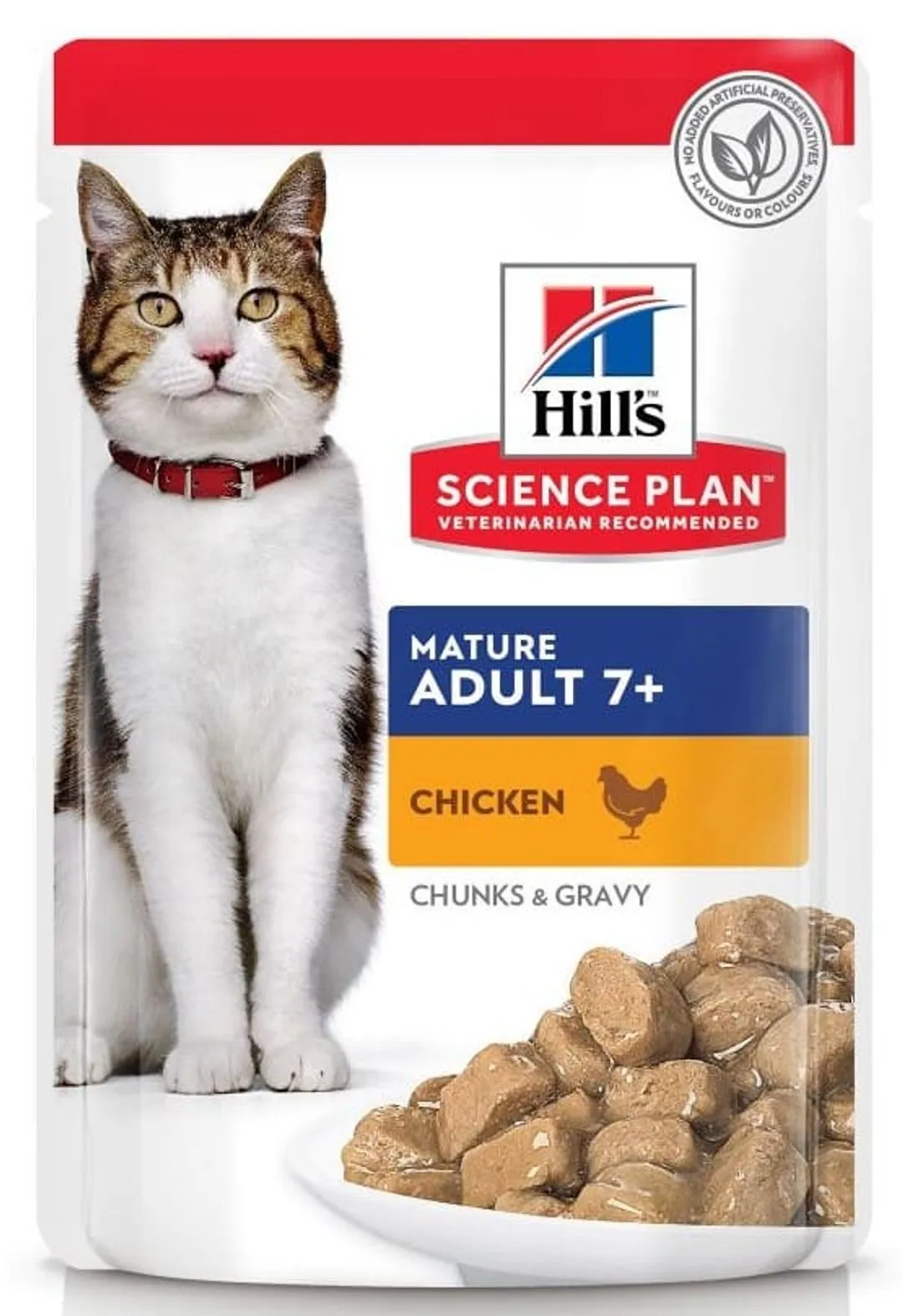 Les Hill’s Science Plan Chat mature 7+ Poulet sont de délicieuses bouchées enrobées dans une sauce savoureuse qui fera certainement plaisir à votre animal de compagnie. Non seulement elles sont très digestes, mais elles apportent également tous les éléments nutritifs essentiels à la santé et au bien-être de votre chat senior.