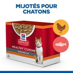 Caractéristiques des mijotés Hill’s Science Plan Chat Young Adult Sterilised Healthy Cuisine Poulet Saumon